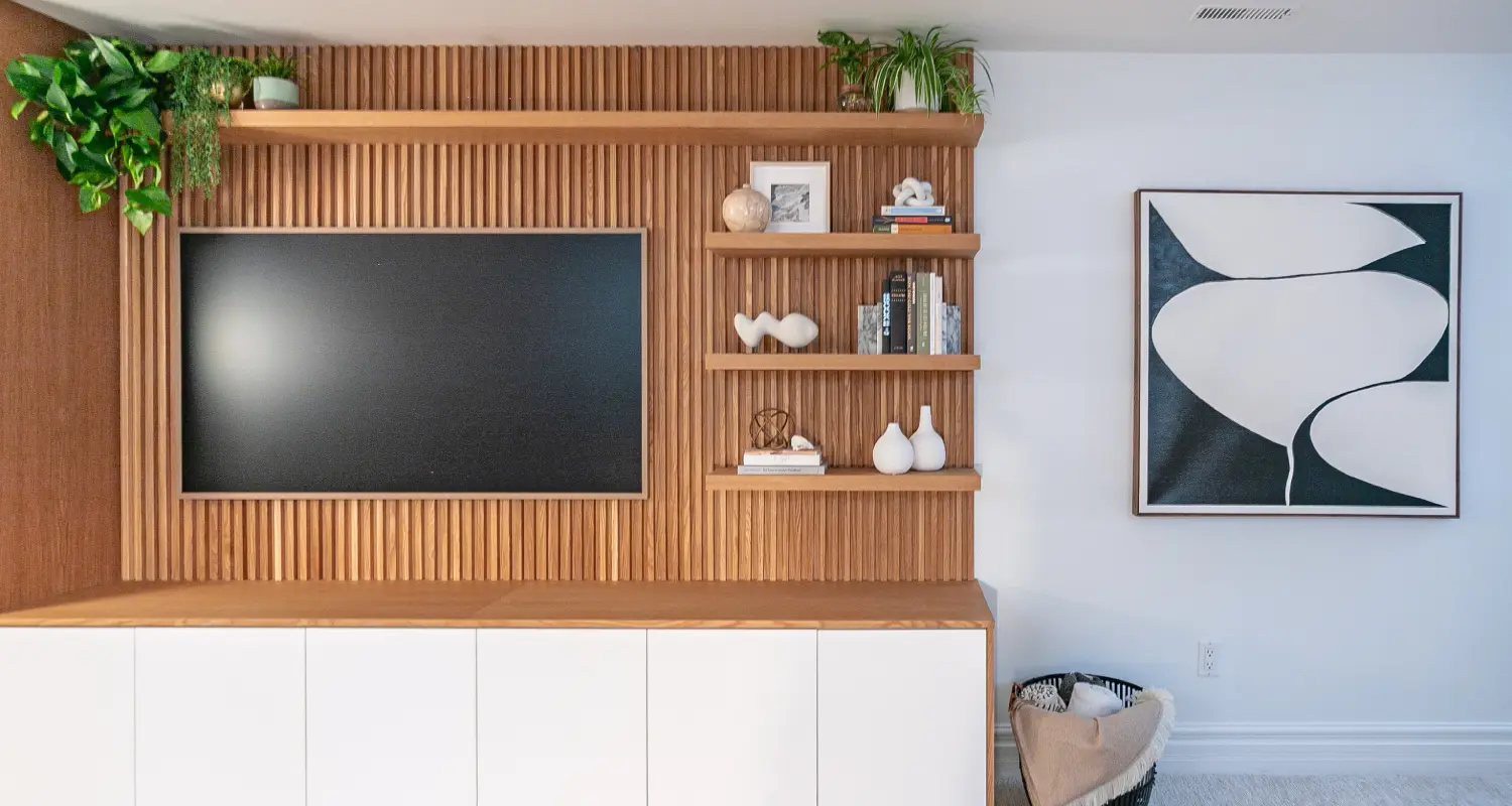 Our expertise lies in integrating wood elements directly into the architecture, from floor-to-ceiling wood panels to custom storage solutions that feel like part of the original structure. Everything is fabricated in-house by our skilled team, ensuring quality control from concept to installation.