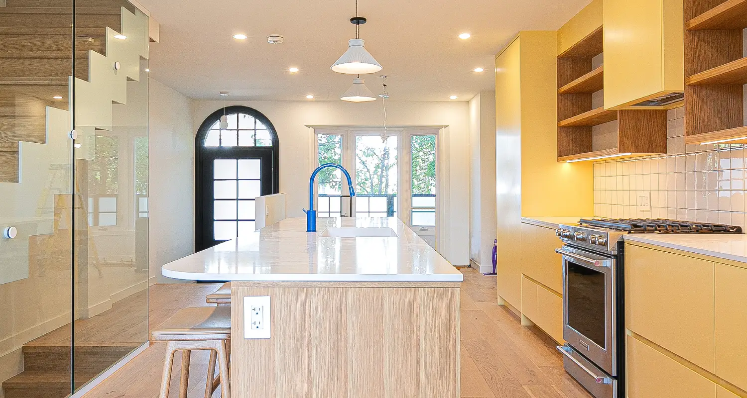 Our expertise lies in integrating wood elements directly into the architecture, from floor-to-ceiling wood panels to custom storage solutions that feel like part of the original structure. Everything is fabricated in-house by our skilled team, ensuring quality control from concept to installation.